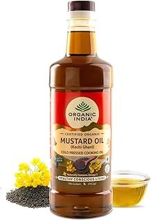 A TATA Product – Organic India Mustard Oil 1000ml, Certified Organic, Lab Tested on 600+ Parameters, Kachi Ghani Sarso Ka Tel, Natural Flavour, Ideal for Daily Cooking & Healthier Living