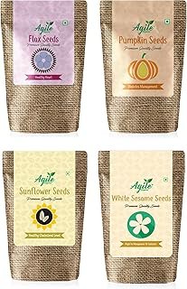 Agile Organic – Seeds Cycling Seeds Combo – Raw Seeds Combo (Sunflower, Flax, Pumpkin, White Sesame 100g Each) – To Enhance Hormonal Balance and Improve Menstrual Health for Women.